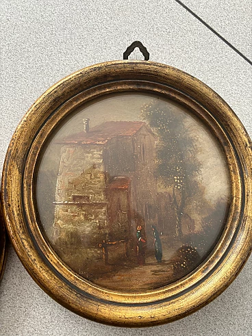 Paesaggi di campagna, coppia di dipinti a olio su tavola, fine '800