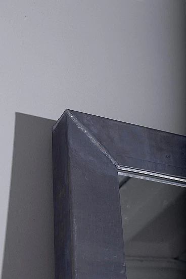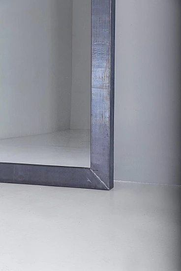 Specchio con cornice in acciaio di Fratelli Boffi. Rifletti sull'eleganza contemporanea con questo imponente specchio Boffi, un esemplare del recente design italiano intriso dello spirito innovativo degli anni 2000. Incorniciato in un acciaio spesso e volutamente minimalista, questo specchio rettangolare testimonia la maestria della lavorazione artigianale del metallo, unendo funzionalità e bellezza in un'unica forma d'arte. La cornice, dal fascino industriale e dalla finitura brunita, racchiude il vetro in modo robusto e sicuro, offrendo un accattivante contrasto visivo che cattura e riflette la luce in modo unico. La sua possibilità di posizionamento sia in verticale che in orizzontale consente una versatilità decorativa che si adatta con naturalezza a qualsiasi ambiente, dagli spazi residenziali più intimi alle grandi sale espositive. Questo specchio Boffi si distingue non solo per la qualità manifatturiera ma anche per il suo stile distintivo che dialoga con lo spazio circostante, creando un punto focale di raffinata semplicità. Ogni riflessione diventa un'opera d'arte, ogni sguardo uno scambio, una finestra aperta su mondi possibili e visioni personali. Portare questo specchio in una casa o in un ufficio significa scegliere di circondarsi di bellezza funzionale, con un design che trascende le mode e diventa icona di un'eleganza senza tempo. Un oggetto che non si limita a riflettere immagini ma, con la sua presenza, invita alla contemplazione dell'essenza del vivere moderno, elevando il quotidiano a momento di puro stile.
