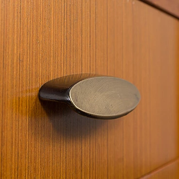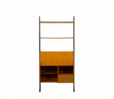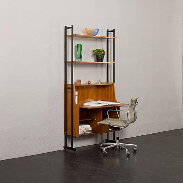 Libreria con scrittoio in teak nello stile di Vittorio Dassi, anni '60. Questo pezzo offre molto più di una normale scrivania: consente di risparmiare spazio, offre discrezione e trasuda eleganza. Realizzata in legno di teak chiaro, restaurata con composti professionali e con montanti delicatamente ridipinti, questa libreria vanta un aspetto raffinato. La sua scrivania pieghevole massimizza l'efficienza dello spazio, offrendo funzionalità e privacy. Quando la ribalta dello scrittoio è aperta, si estende fino a una profondità di 61 cm, offrendo ampio spazio di lavoro. Caratterizzata da un bellissimo schienale, questa libreria può anche stare in piedi liberamente, aggiungendo versatilità al suo fascino. Personalizza la disposizione di ripiani e armadi in base alle tue esigenze, inclusi due ripiani da 30 x 90 cm ciascuno e due cassetti interni estraibili. È stata ispezionata attentamente per assicurarsi che sia in ottime condizioni e perfettamente funzionante. Spedita in parti per un facile assemblaggio, le dimensioni per la spedizione sono le seguenti: 81 x 90 x 38 cm.