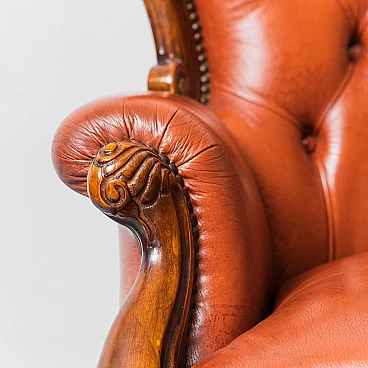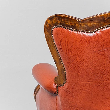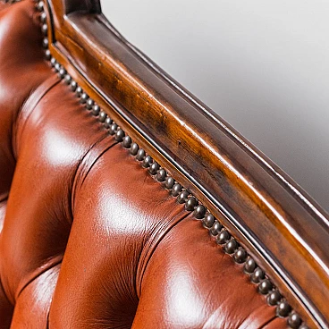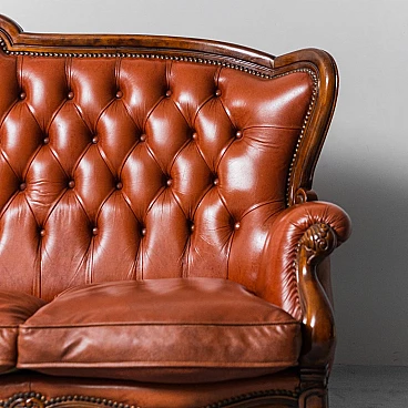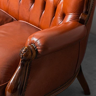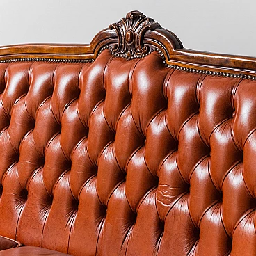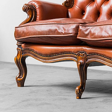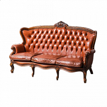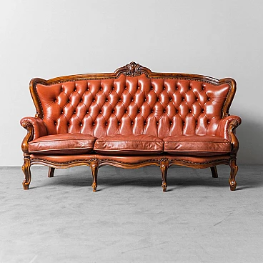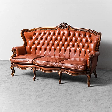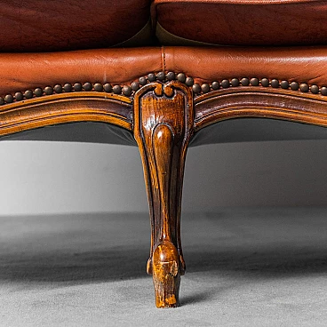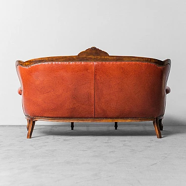Divano a 3 posti in legno e pelle marrone, anni '50