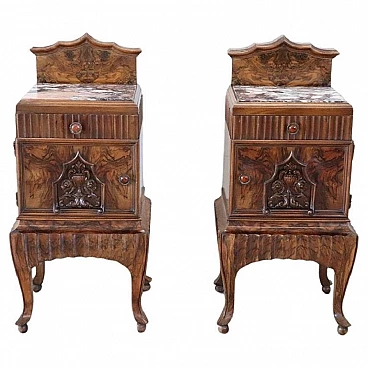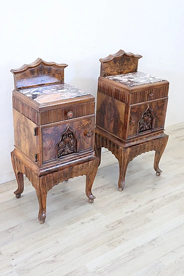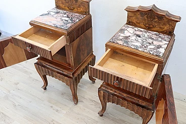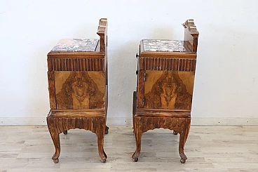 Coppia di comodini Art Déco in radica di noce, anni '20