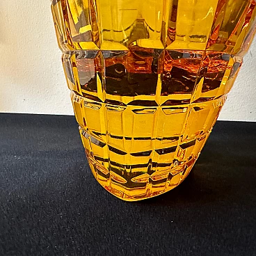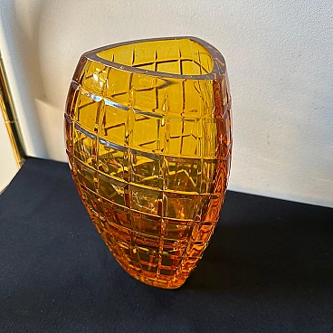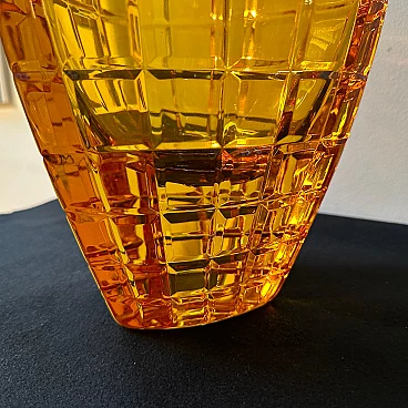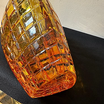 Vaso belga in vetro ambrato di Val Saint Lambert, anni '60. È uno straordinario esempio di design e artigianato della metà del secolo. La sua combinazione unica di forma, colore e struttura lo rende un sorprendente centrotavola che aggiunge eleganza e raffinatezza a qualsiasi spazio interno. Val Saint Lambert, un rinomato produttore di vetro belga, è stato celebrato per la sua maestria nelle tecniche di lavorazione del vetro e la sua capacità di creare straordinarie opere d'arte. Questo vaso è una testimonianza dell'esperienza e della visione artistica del marchio. Realizzato in pesante vetro ambrato, il vaso vanta una tonalità ricca e calda che irradia eleganza e raffinatezza. La colorazione ambrata aggiunge profondità e carattere al pezzo, conferendogli un senso di calore e fascino. Ciò che distingue questo vaso è il suo intricato design intagliato, che forma un delicato motivo a rete che avvolge la superficie del vetro. Il motivo della rete, ottenuto attraverso meticolose tecniche di intaglio e modellatura, crea un effetto visivo affascinante, proiettando ombre e riflessi intricati quando illuminato. L'estetica modernista del vaso è evidente nelle sue linee pulite, forme geometriche e design minimalista. La semplicità della silhouette consente all'intricato motivo a rete di essere al centro dell'attenzione, evidenziando l'artigianalità e l'attenzione ai dettagli investiti nella sua creazione. Essendo una creazione belga, il vaso riflette le tradizioni artistiche e le influenze della regione, nota per la sua ricca storia di lavorazione del vetro e di arti decorative. Il vaso è in perfette condizioni, probabilmente mai utilizzato.