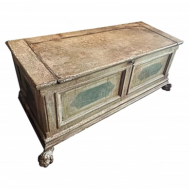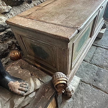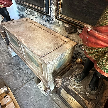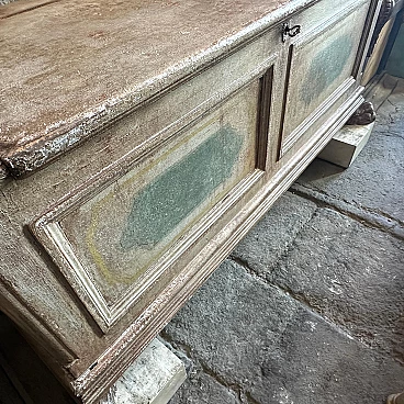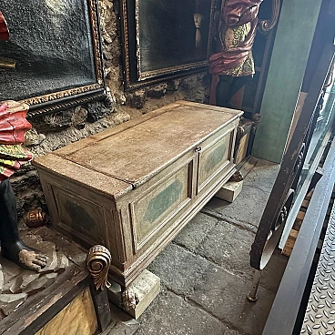 Cassapanca fiorentina in abete laccato bianco e verde, fine '800