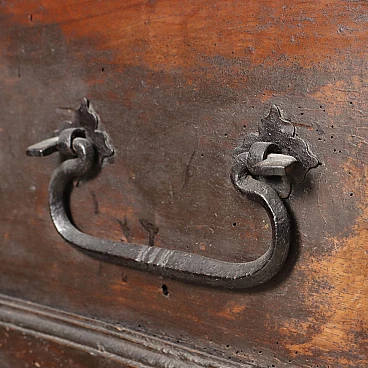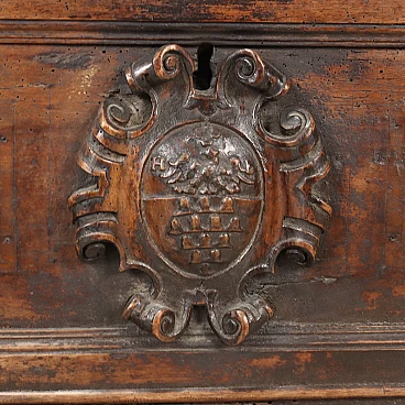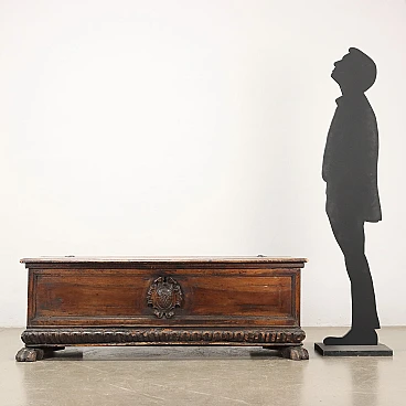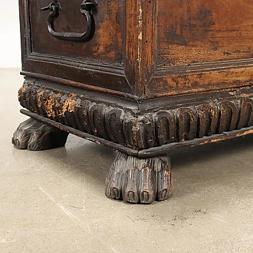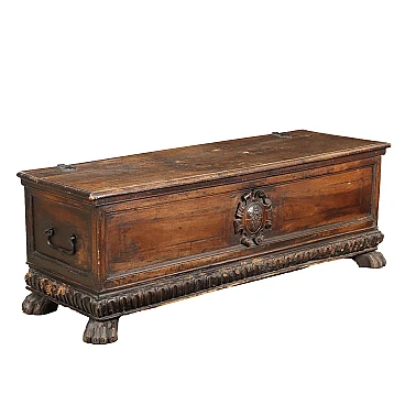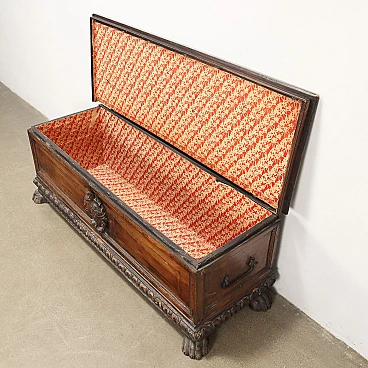 Cassapanca in noce con piano in pioppo e piedi leonini, '700