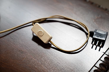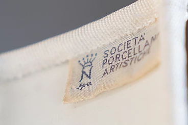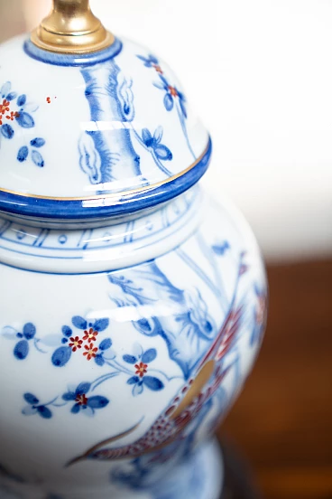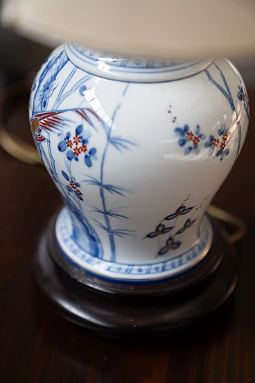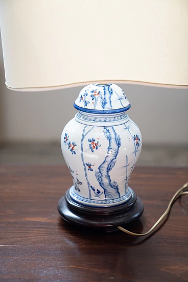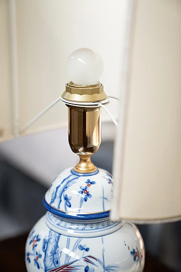 Lampada da tavolo in porcellana e tessuto, anni '50