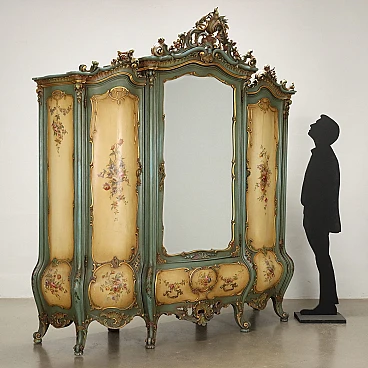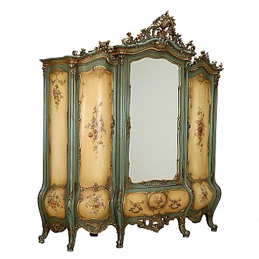 Armadio in legno laccato con un cassetto e un'anta a specchio
