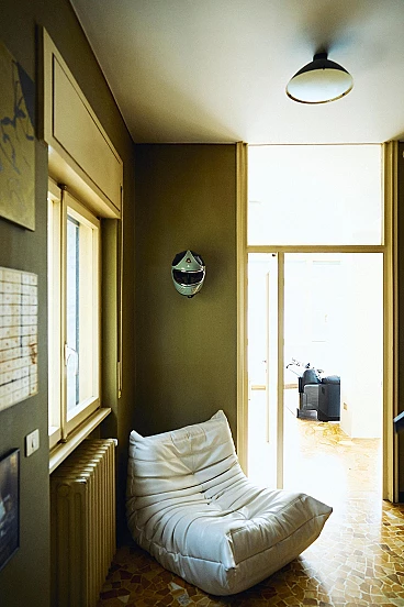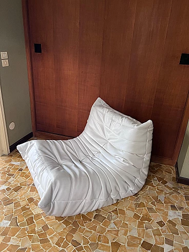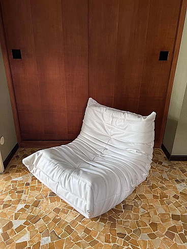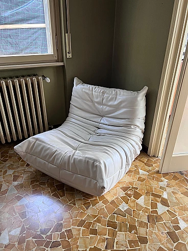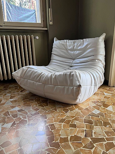 Poltrona Togo in pelle bianca di Michel Ducaroy per Ligne Roset, anni '90. "Incredibilmente comodo", questo è ciò che quasi tutti pensano e dicono dopo essersi seduti per la prima volta su una poltrona o un divano Togo. La sua forma arrotondata e avvolgente e la pelle morbidissima ne fanno una delle sedute più comode in assoluto. Il divano Togo è rimasto un classico per oltre 40 anni: cucito a mano nel piccolo villaggio francese di Briord, questo divano modulare ha una silhouette curva che offre le caratteristiche pieghe del tessuto stropicciato e lo rende la seduta ideale per sdraiarsi e rilassarsi. La poltrona Togo qui proposta, prodotta intorno agli anni '90, è conservata in condizioni molto buone. È rivestita in pelle bianca ed è totalmente originale, come dimostra l'etichetta Ligne Roset evidenziata nelle foto. Presenta una leggera patina ma per il resto è in ottime condizioni. Altezza della seduta: 38 cm.
