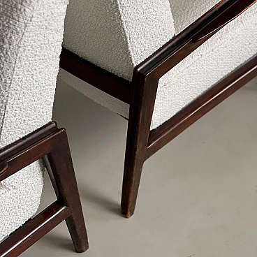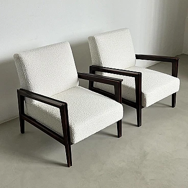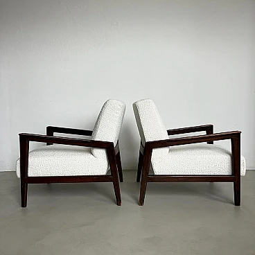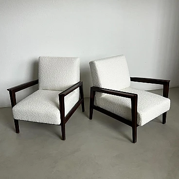 Coppia di poltrone in noce e boucle' bianco, anni '50