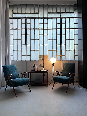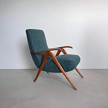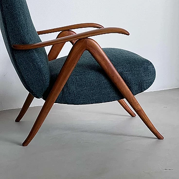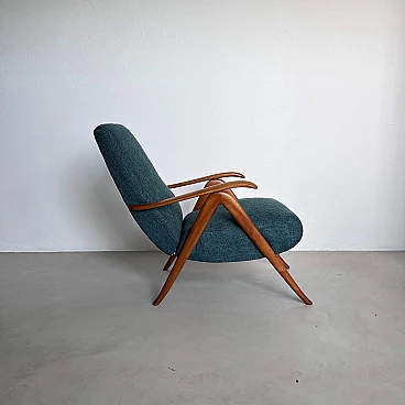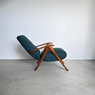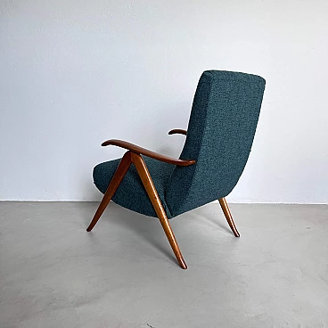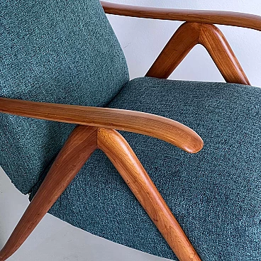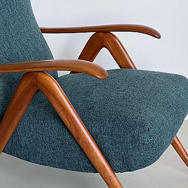 Coppia di poltrone reclinabili in legno e tessuto verde, anni '60