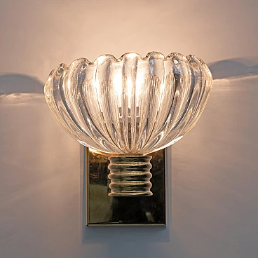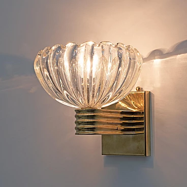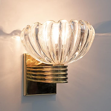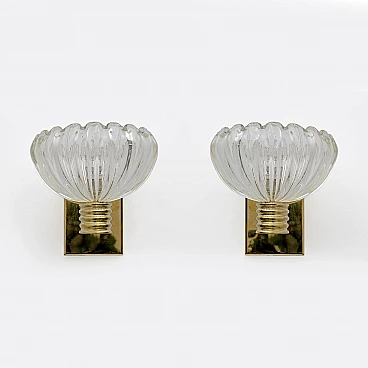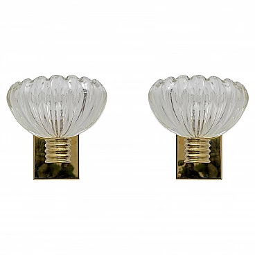 Coppia di applique Art Déco attribuite a Barovier & Toso, anni '40. Queste bellissime lampade in vetro di Murano sono state realizzate con la tecnica artigianale del vetro soffiato; poggiano su un elegante supporto in ottone con texture. Sono estremamente decorative e possono essere utilizzate in qualsiasi ambiente. La loro luce è calda e molto piacevole e si adatta a molti stili di interni per aggiungere un tocco di eleganza. È necessaria una lampadina con attacco E27 o E26 per gli USA. Sono cablate per gli Stati Uniti e funzionano a 110 o 220 Volt. Si prega di notare che sono state ricablate. Due coppie di applique disponibili (prezzo per singola coppia).