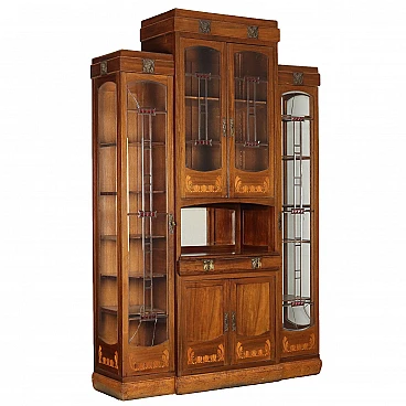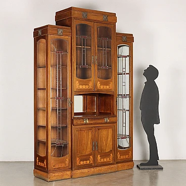 A partire da questa data la direzione artistica fu affidata ai fratelli Sicchirollo che, accanto a una produzione lussuosa, ne avviarono una di mobili più semplici e funzionali. Corpo centrale a due ante sormontate da cassetto, presenta alzata a due ante con vetri ornati con inserti in bronzo e vetro colorato. Ai lati sono presenti altre due teche con vetri sui fianchi e ante vetrate frontali.