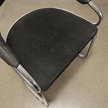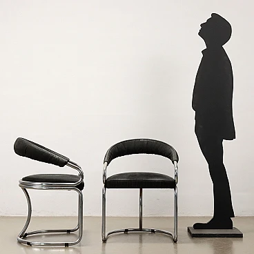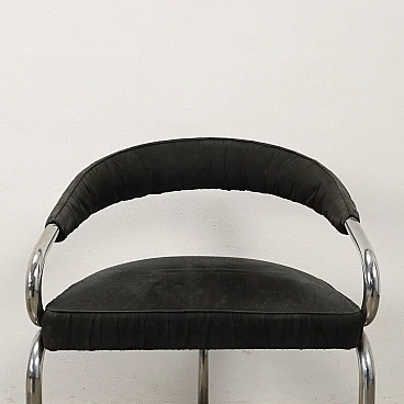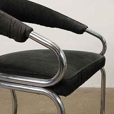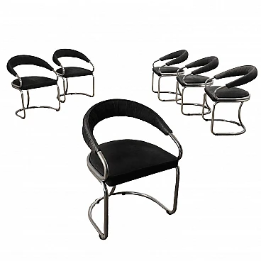 6 Sedie con rivestimento in tessuto nero e tubolare cromato, anni '60
