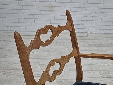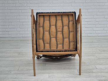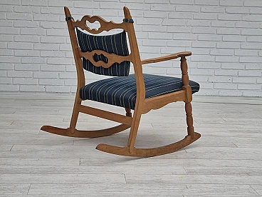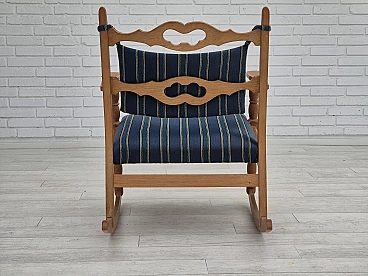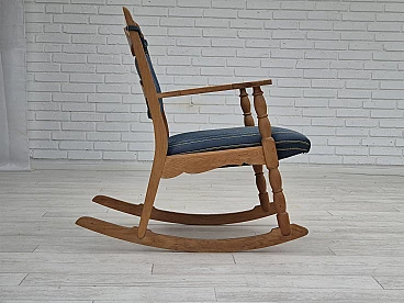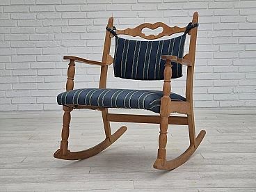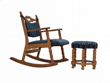 Sedia a dondolo con poggiapiedi in rovere e lana blu, anni '70