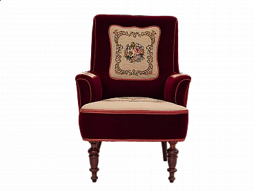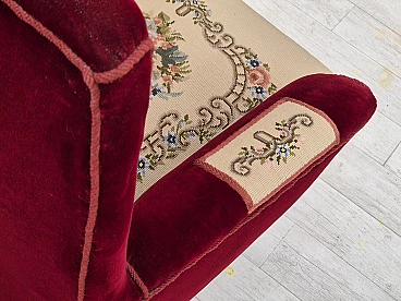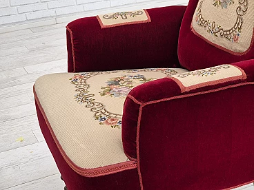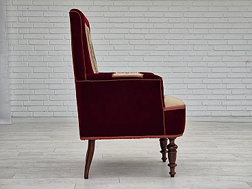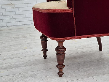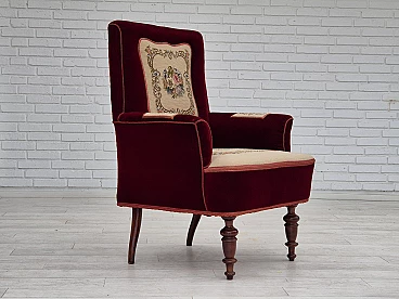 Poltrona danese con schienale alto con toppe in lana, anni '50