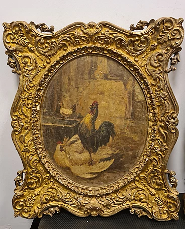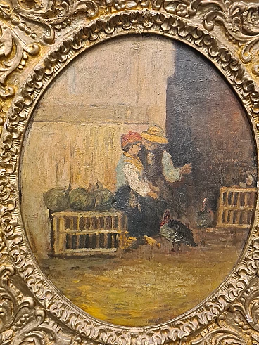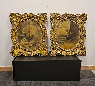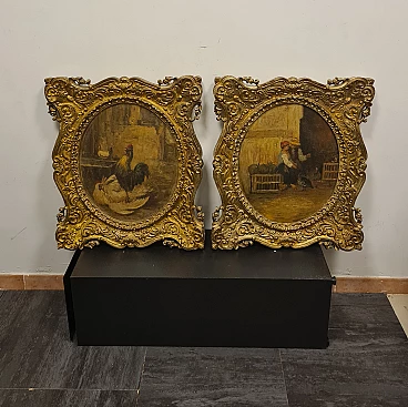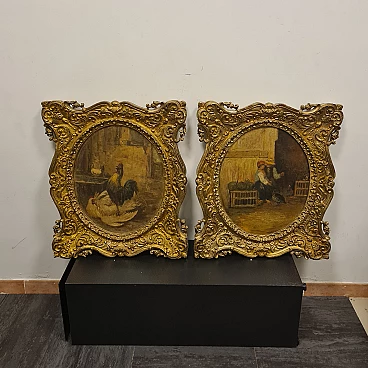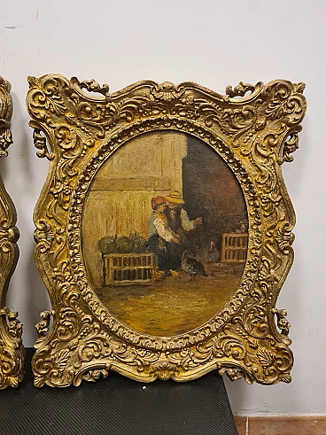 Coppia di Dipinti vita contadina, olio su legno, fine '800