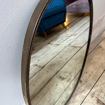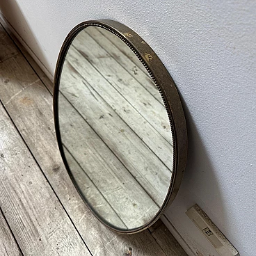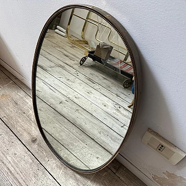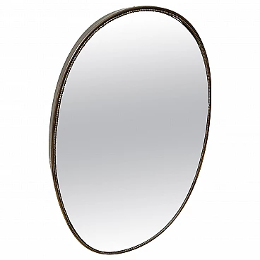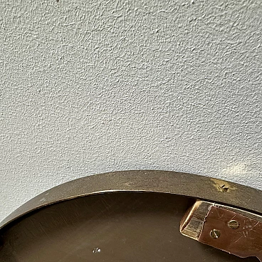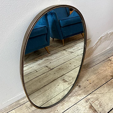Specchio da parete ovale in ottone massiccio disegnato e prodotto in Italia negli anni '50. L'ottone è in patina originale e presenta segni d'uso e d'età, il vetro dello specchio è quello originale. Gli anni '50 sono stati un periodo di grande creatività e innovazione nel mondo del design e il movimento Mid-Century Modern è stato all'avanguardia in questo periodo entusiasmante. Questo specchio da parete ovale italiano è uno splendido esempio di questo stile di design e un eccezionale pezzo di artigianato italiano. Realizzato in ottone massiccio, questo specchio vanta una finitura calda e dorata, elegante e sofisticata. Il materiale in ottone è altamente resistente e malleabile, consentendo di creare le linee ampie e fluide che caratterizzano lo stile Mid-Century Modern. La forma ovale dello specchio è un motivo classico del design del Mid-Century Modern, che rappresenta il movimento e la fluidità. La forma è perfettamente proporzionata, con una curva dolce che crea un senso di armonia ed equilibrio. Questo specchio è stato progettato per essere appeso alla parete, con una staffa sicura sul retro che ne garantisce il posizionamento. La cornice in ottone dello specchio è relativamente semplice, con linee pulite e un design minimalista che permette allo specchio di essere al centro della scena. La cornice è un omaggio ai principi del design di Giò Ponti, una delle figure più importanti e influenti dell'era del Mid-Century Modern. I suoi progetti erano caratterizzati da un'enfasi sulla semplicità e sulla funzionalità. Nel complesso, questo specchio da parete ovale italiano è un pezzo di design mozzafiato che cattura lo spirito e la creatività degli anni Cinquanta. Sarebbe un'aggiunta straordinaria a qualsiasi casa o collezione e sarà sicuramente apprezzata per le generazioni a venire.