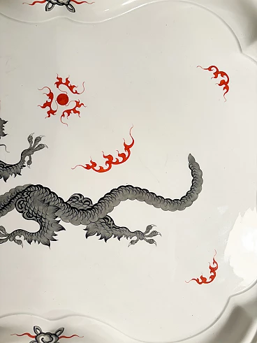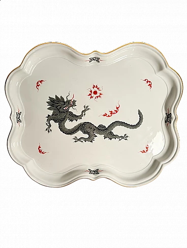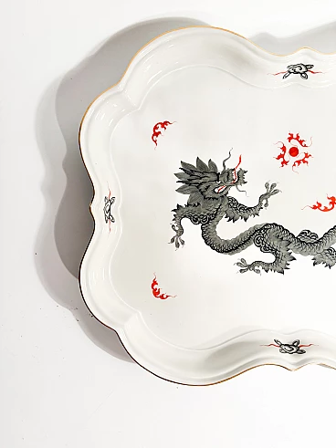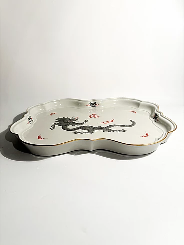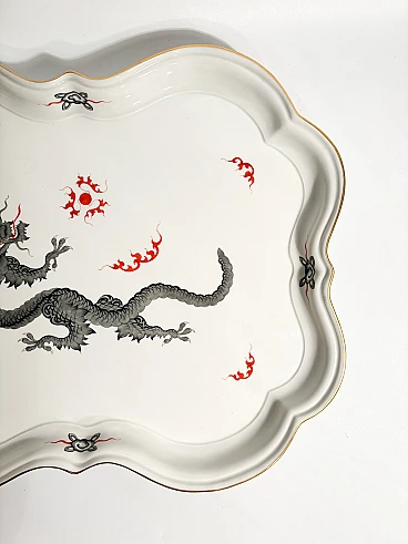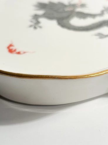 Vassoio in porcellana di Meissen, collezione Ming Dragon Black, realizzato negli anni Ottanta. La doratura di una piccola parte del bordo potrebbe essere stata restaurata, come mostrato nelle foto. Ulteriori informazioni e/o foto disponibili su richiesta.