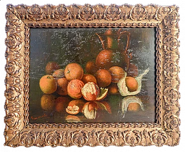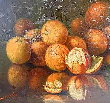 Natura morta con arance, dipinto a olio su masonite