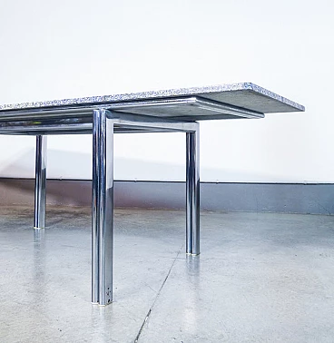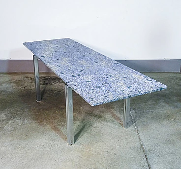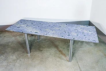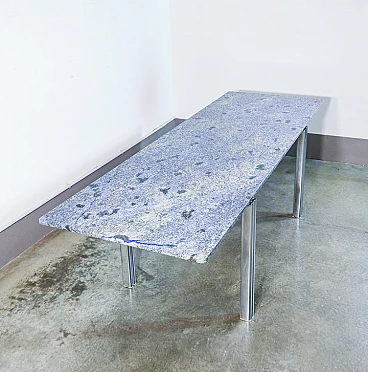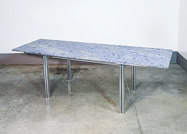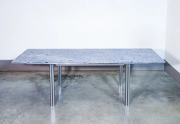Tavolo in granito Azul Bahia e metallo cromato, anni '80