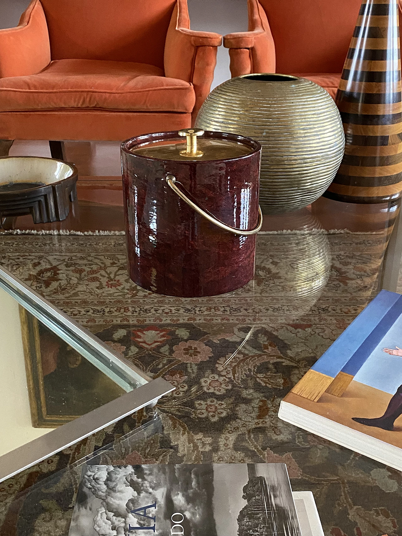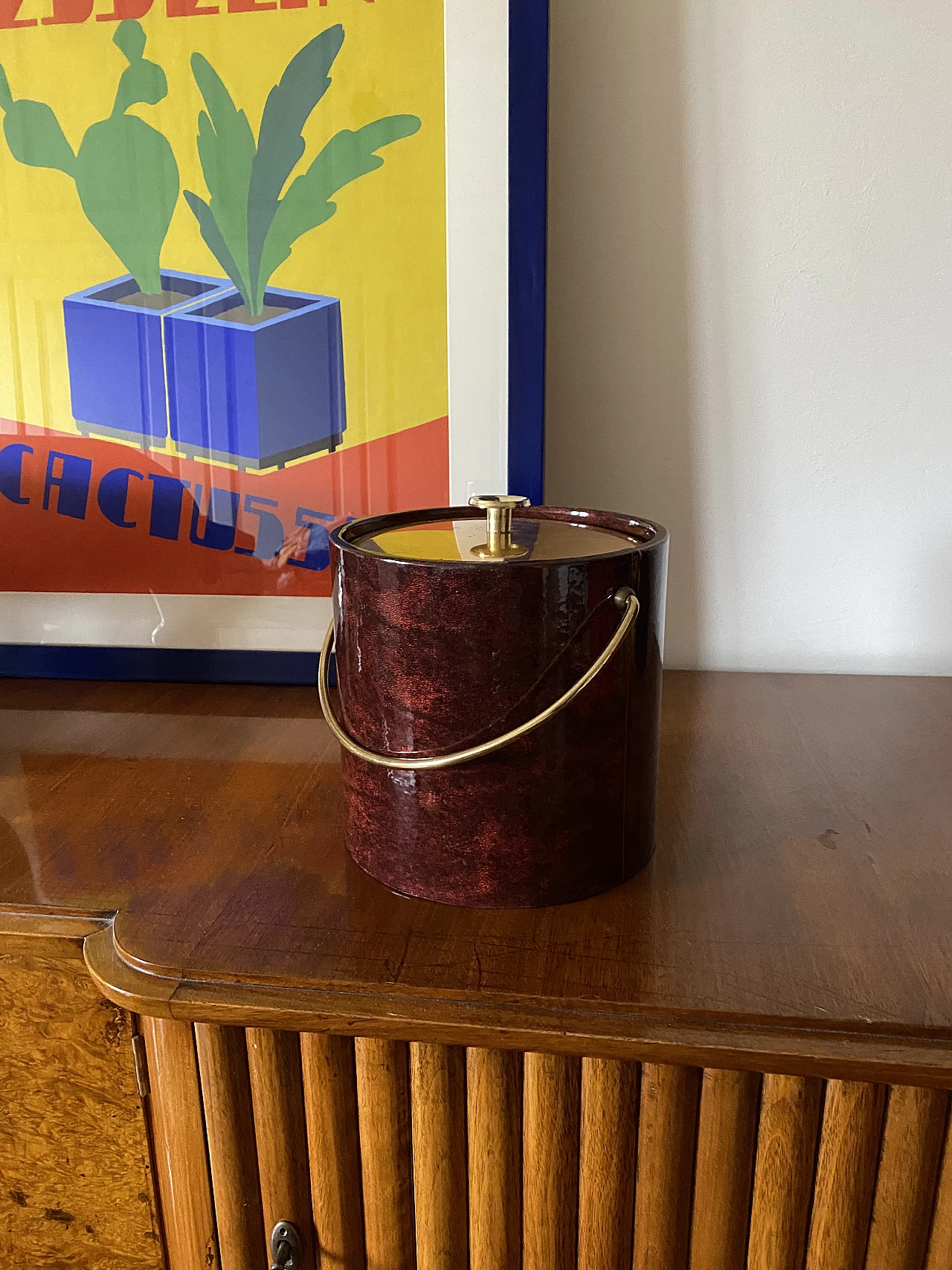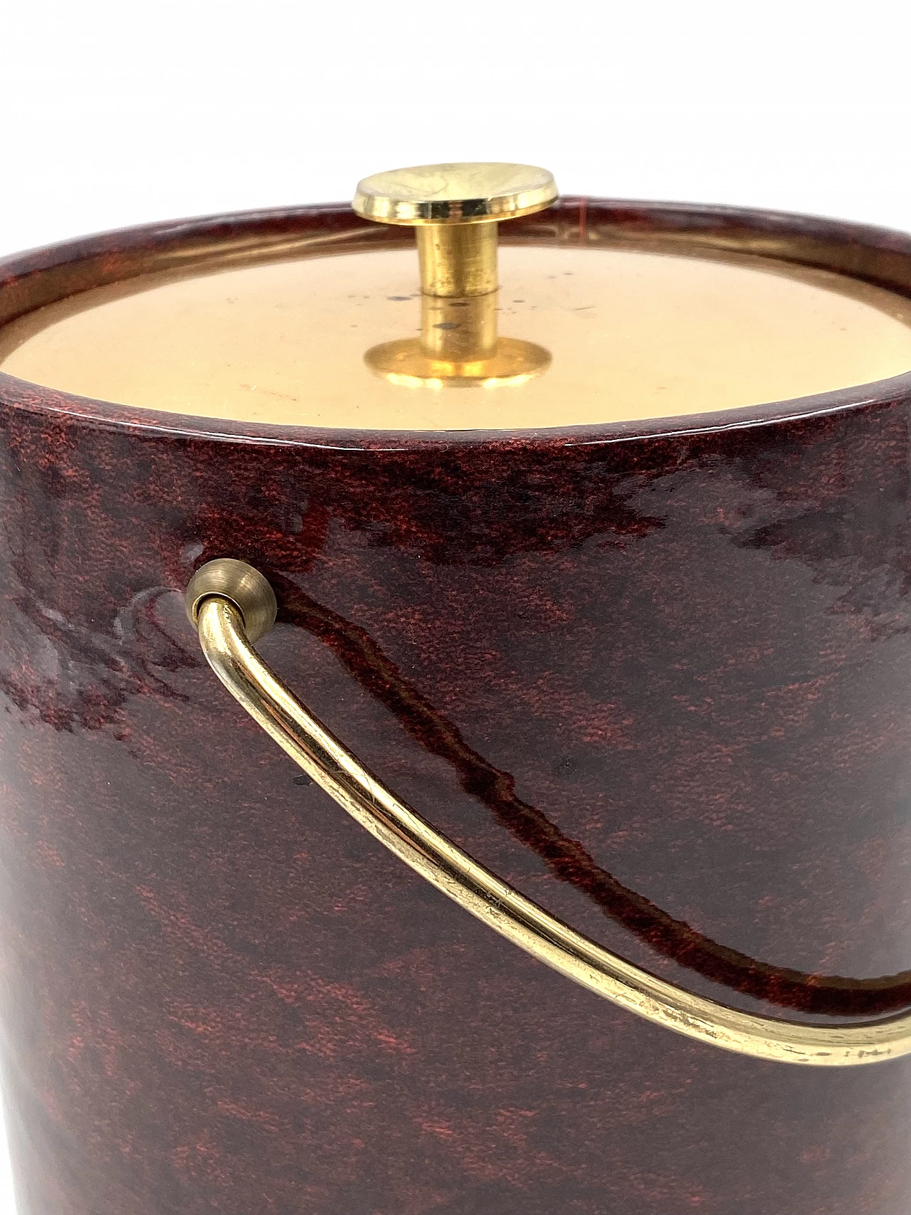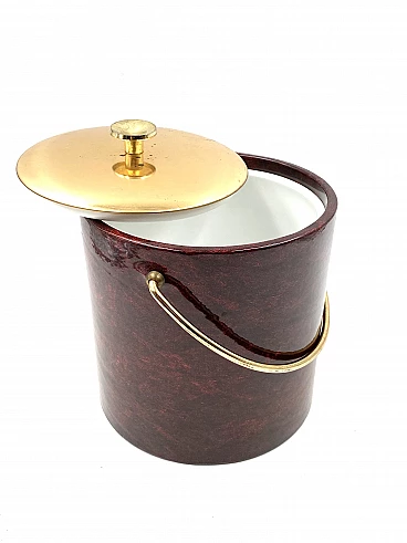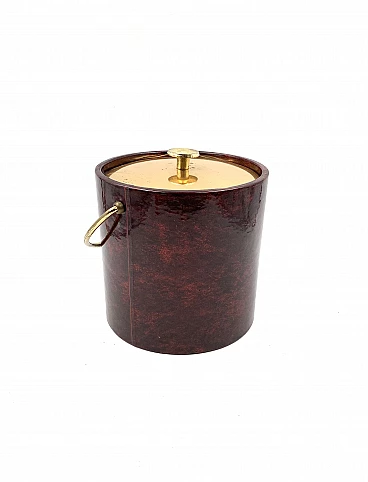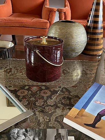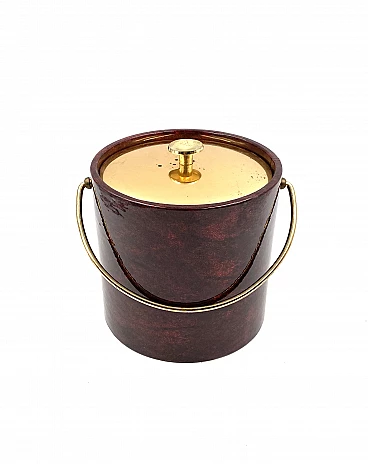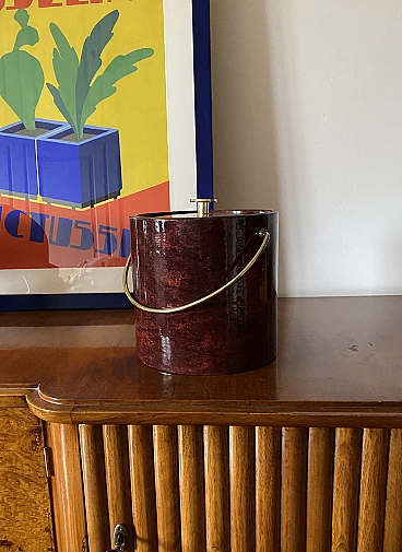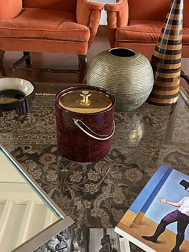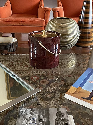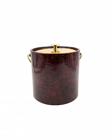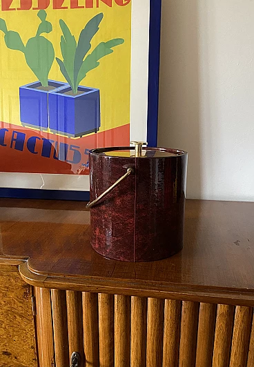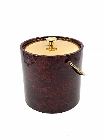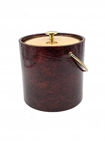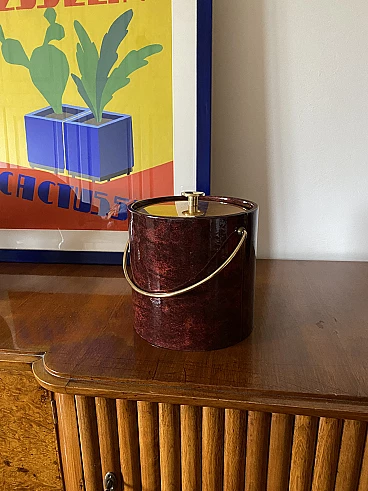 Secchio per il ghiaccio in ottone e pergamena di Aldo Tura, anni '60