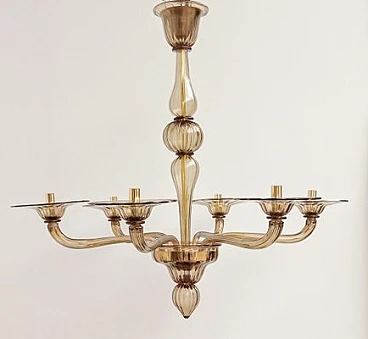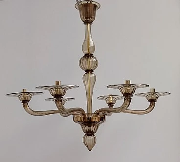 Lampadario in vetro di Murano fumé ambrato, anni '80