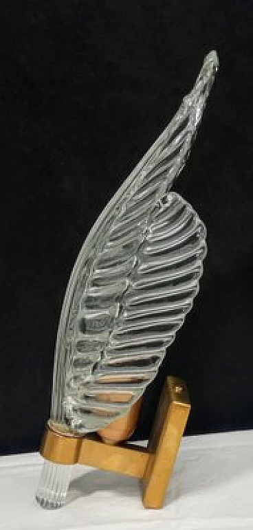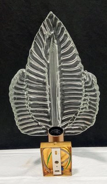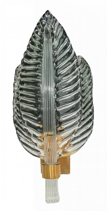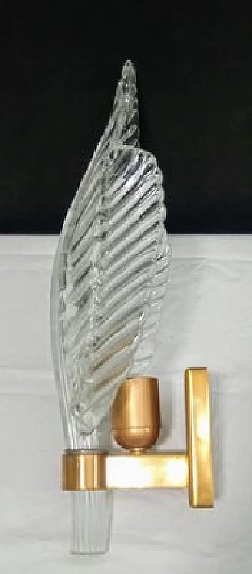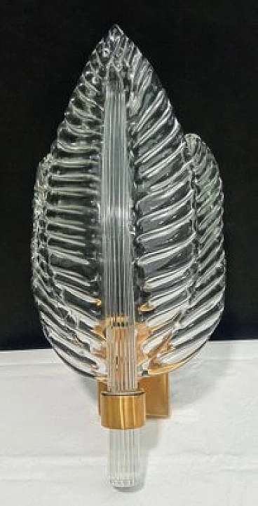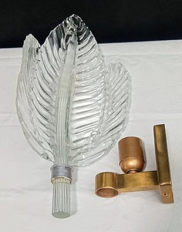 Applique foglia in vetro trasparente e ottone di Barovier & Toso