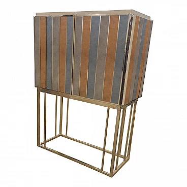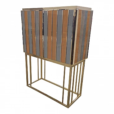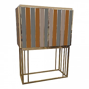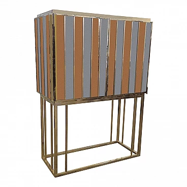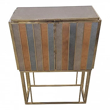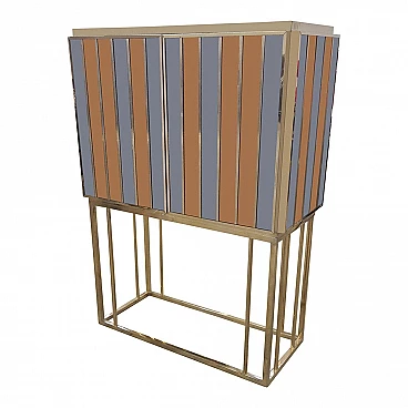 Mobile bar in vetro specchiato e cassetto in legno, anni '80