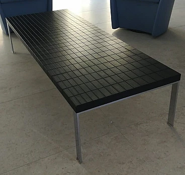 Sulla parte superiore del piano e sul contorno sono presenti canali di abbellimento a passo variabile che creano un pattern geometrico a scacchiera. Il tavolo trasmette ordine ed eleganza grazie anche alle finiture con cui è proposto. I tavoli della collezione Geometrie sono il perfetto esempio di sobrietà e praticità moderna.
