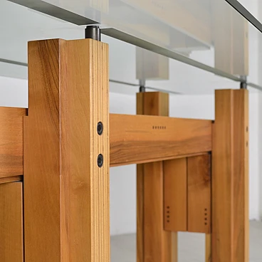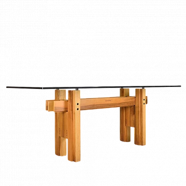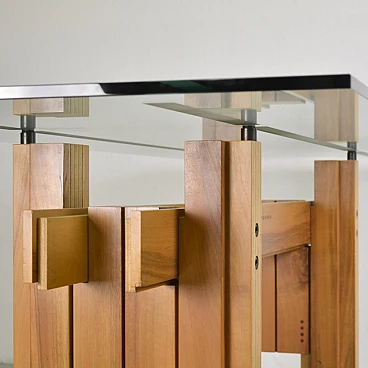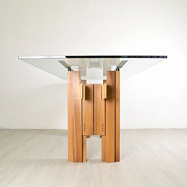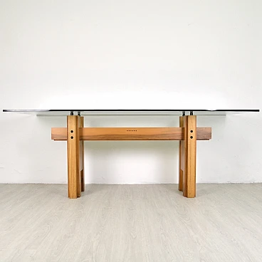 Tavolo Cangrande in legno e vetro di Franco Poli per Bernini, 1979