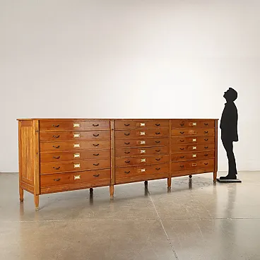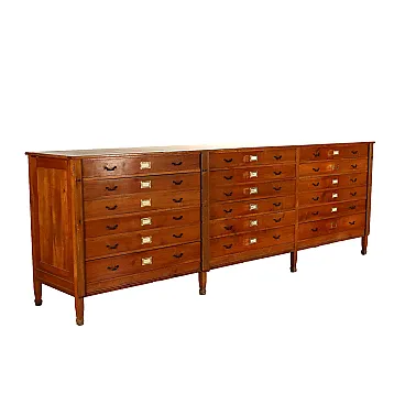 Cassettiera in legno di ciliegio a tre sezioni con montanti movibili
