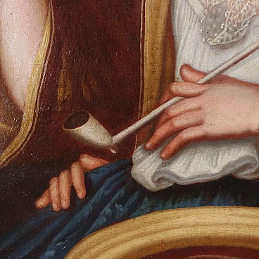 I due personaggi sono in atteggiamento di scherzosa complicità, intenti entrambi a fumare una lunga pipa.
