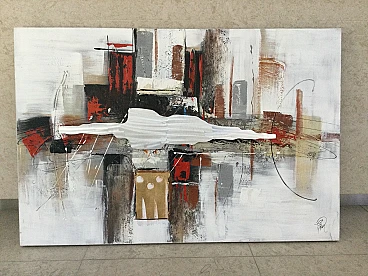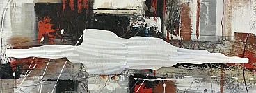 Dipinto su tela con inserti metallici di Edgar Ramirez raffigurante una composizione astratta. Ramirez è designer, pittore, scultore, decoratore di interni, artista autodidatta dal gusto innato. Nasce in una piccolissima città della provincia di Bogotá, Colombia, nel 1970. Ostacolato dalla famiglia nel sviluppare la sua naturale predisposizione all'arte lascia giovanissimo il paese di origine alla ricerca della sua strada. Gira il mondo vivendo per alcuni anni a Londra e Parigi, dove svolge lavori umili ma che gli permettono di sperimentare la sua vena artistica. Trasferitosi in Italia agli inizi di questo millennio finalmente trova modo mettere a frutto la sua esperienza firmando diverse opere pittoriche e sculture di pregio e, anche grazie alla collaborazione col suo compagno di vita Paolo Rossini, è ora un personaggio conosciuto e apprezzato nel mercato dell'arte e della decorazione d'interni.