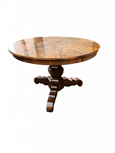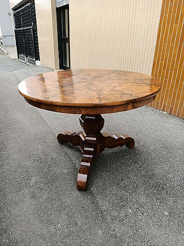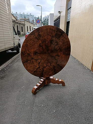 Tavolo rotondo in radica di noce, '800