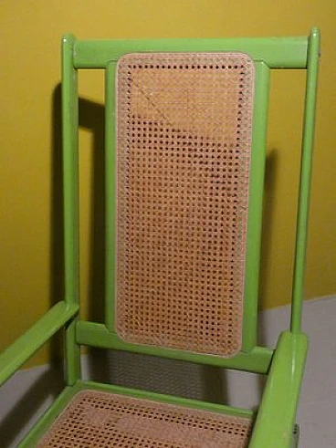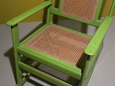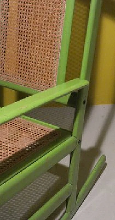 Sedia a dondolo in legno verde acido e paglia di Vienna, anni '70