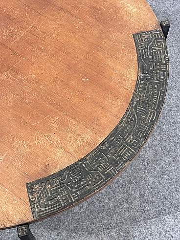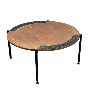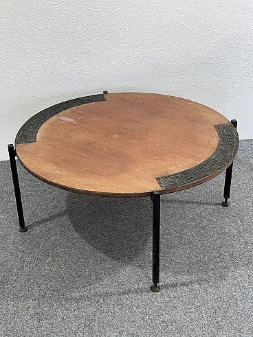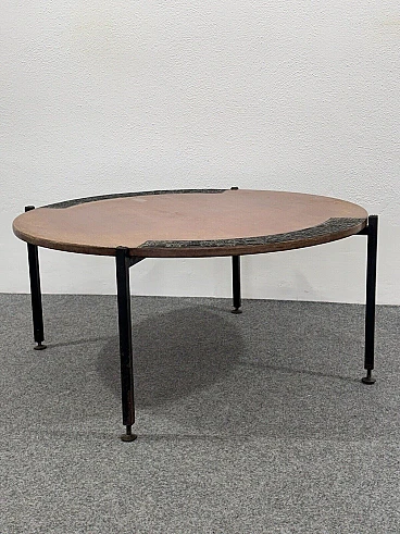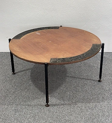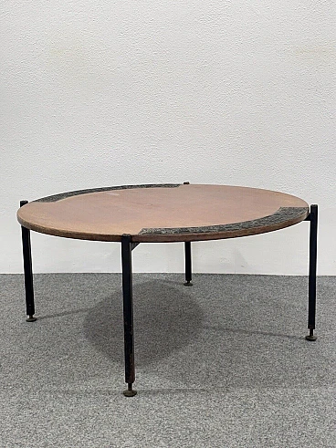 Tavolino rotondo in metallo e legno di Silvio Cavatorta, anni '60