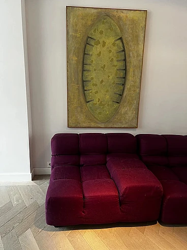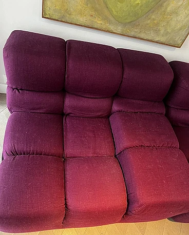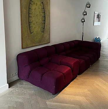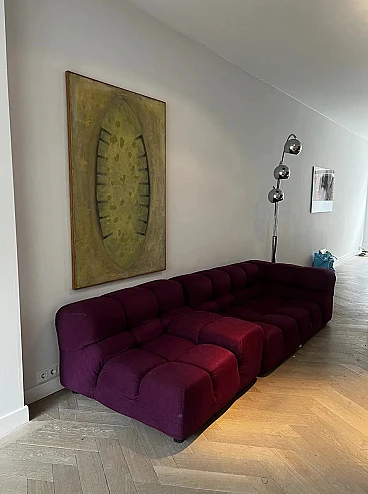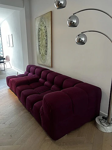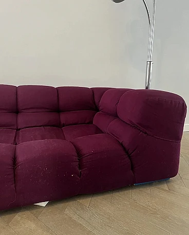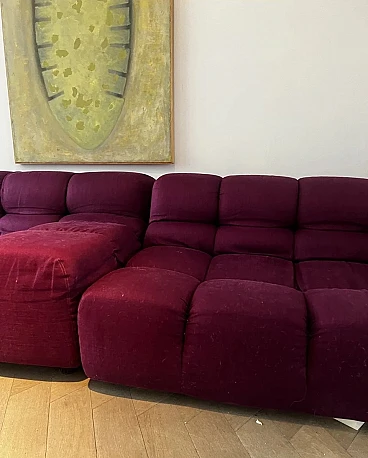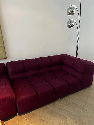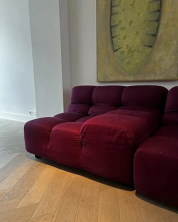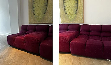Divano Tufty-Time di Patricia Urquiola per B&B Italia. Rivestimento in morbido tessuto di cotone Maxalto color rosso ciliegia intenso. È composto da due parti: un modulo di tre cuscini con bracciolo basso da 104 x 104 cm e un modulo di cinque cuscini con il bracciolo alto da 175 x 104 cm. È usato ma in buonissime condizioni; utilizzato per una terza casa. Privo di macchie e ben tenuto. Sono presenti solo pelucchi e tracce del tessuto del telo di stagione con cui è stato ricoperto. Se messo unito ad angolo 60 cm di altezza, 175 cm di larghezza e 208 cm di profondità. Altezza della seduta: 35 cm.