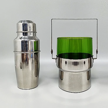 Shaker cocktail e secchiello ghiaccio in acciaio di Pran, anni '70