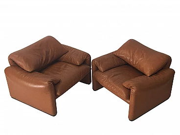 Coppia di poltrone in pelle Maralunga di Vico Magistretti per Cassina