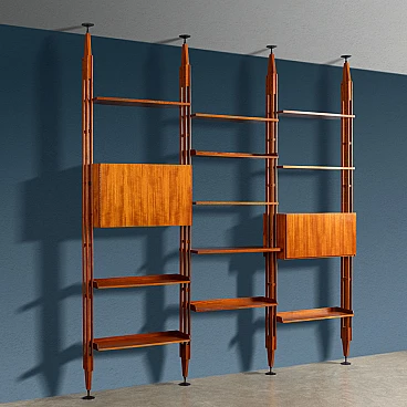 Libreria LB7 a tre campate in teak di F. Albini per Poggi, anni '50