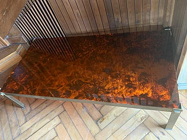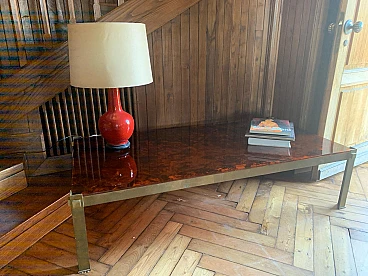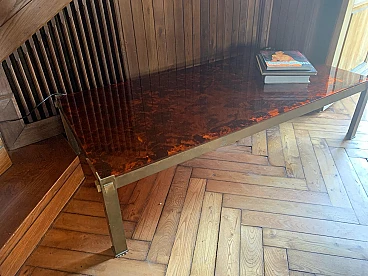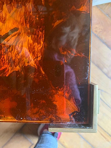 Tavolino in lucite a finta tartaruga e ottone, anni '70