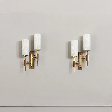 Coppia di applique a due luci nello stile di Lunel, anni '60