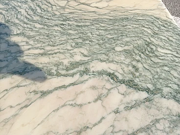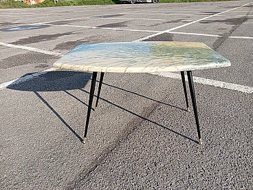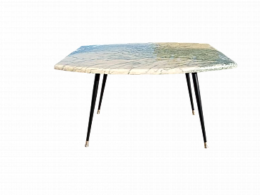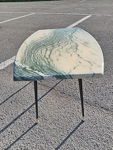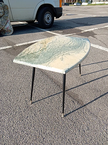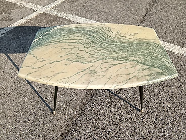 Tavolino con piano in marmo e gambe a spillo in metallo, anni '50