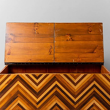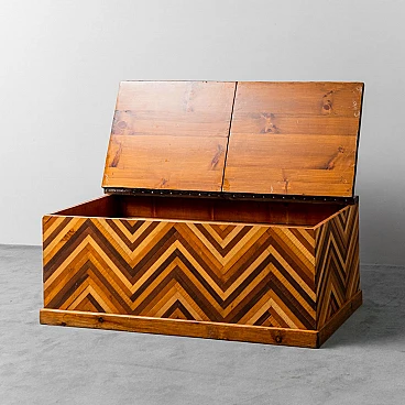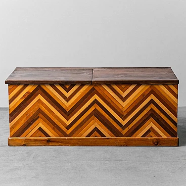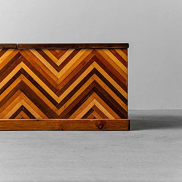 Cassapanca in legno con disegno geometrico, anni '50