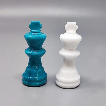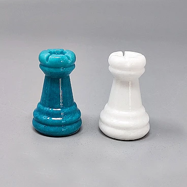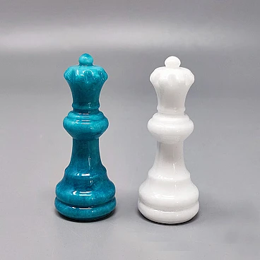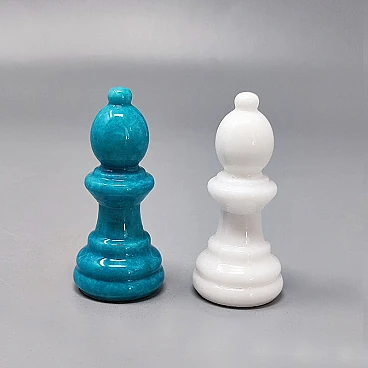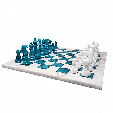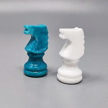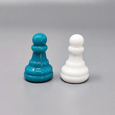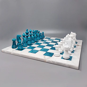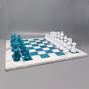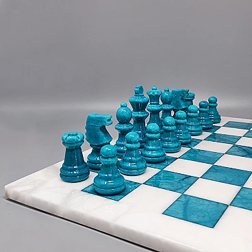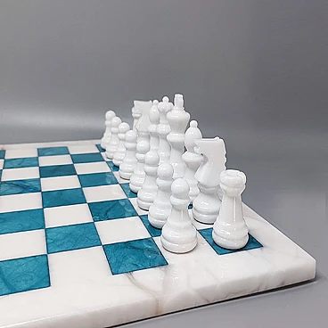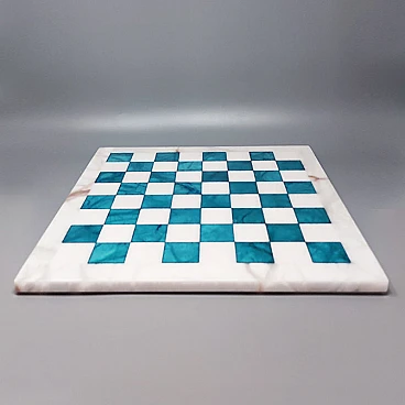 Scacchiera in alabastro di Volterra bianco e turchese, anni '70