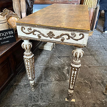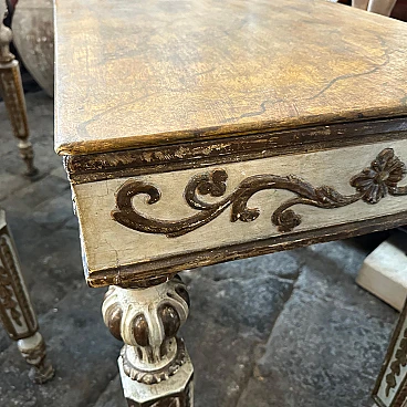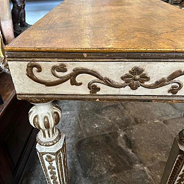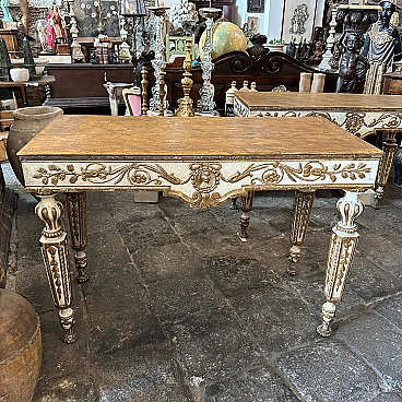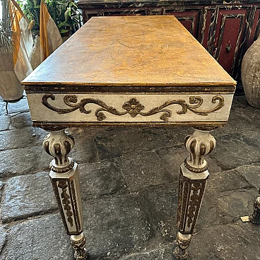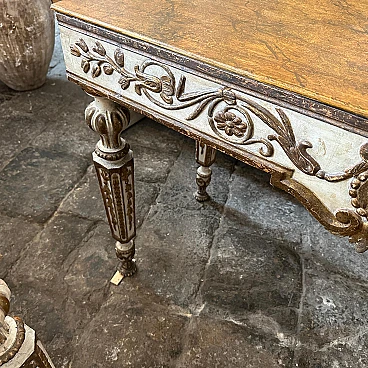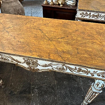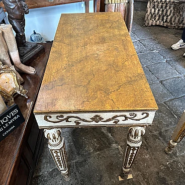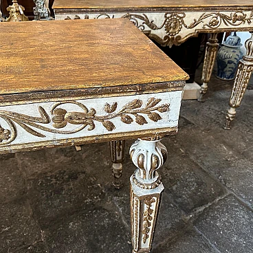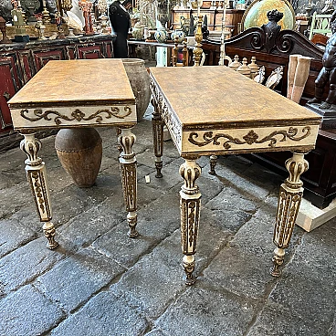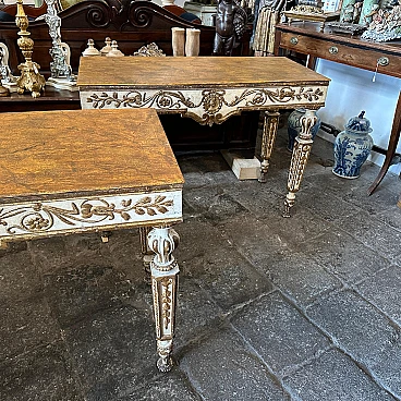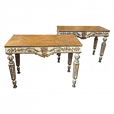 Queste due consolle italiane sono squisiti pezzi d'arredamento che riecheggiano l'eleganza e la raffinatezza caratteristiche dello stile Luigi XVI. Sono in condizioni originali, il legno avorio e laccato presenta normali segni d'uso e d'età, il piano laccato in finto marmo è in buone condizioni. La finitura cremosa e liscia, che ricorda l'avorio, è ottenuta grazie a un meticoloso processo di laccatura. Questa finitura conferisce un senso di lusso e atemporalità alle console, migliorandone il fascino visivo. Gli accenti in legno dorato fungono da abbellimento, aggiungendo ricchezza e profondità al design. Intricati dettagli dorati, sotto forma di delicati intagli e motivi elaborati tipici dello stile Luigi XVI, adornano le consolle, emanando un senso di grandezza e raffinatezza. Esse presentano proporzioni aggraziate e linee eleganti tipiche dei mobili Luigi XVI. Le gambe con motivi ornamentali contribuiscono alla loro bellezza e raffinatezza classica. Le console sono sapientemente realizzate per raggiungere sia l'armonia estetica che l'integrità strutturale, mettendo in mostra l'abilità e la maestria degli artigiani italiani. Queste superbe console attirano l'attenzione e fungono da punti focali in qualsiasi spazio interno raffinato.