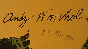 Questa Litografia è numerata 2238/2400. Il timbro CMOA è una garanzia per i multipli di A. Warhol. CMOA è l’acronimo di Carnegie Museum Of Art, museo di Pittsburgh, città natale di A. Warhol, al quale l’artista donò 60 dei suoi soggetti, concedendo la possibilità di realizzare multipli (di ogni soggetto 60 x 60 quali Mao Tse Tung, Flowers e Marilyn Monroe) in tiratura limitata di 2400 pz.