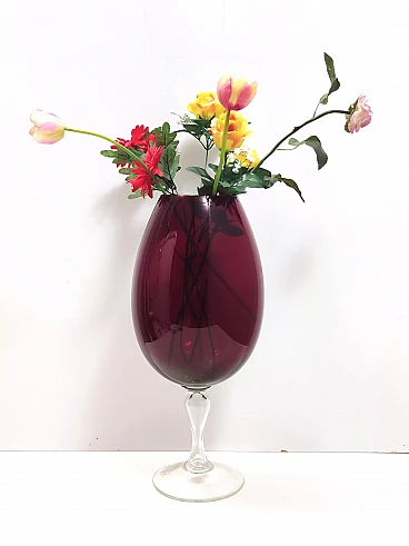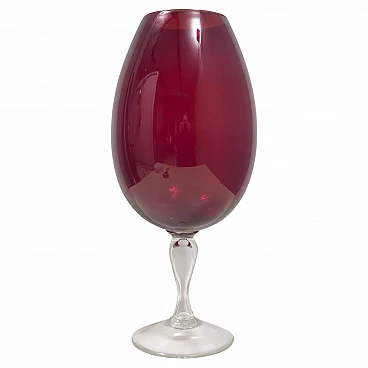 Vaso a bicchiere in vetro soffiato rosso cremisi, anni '60