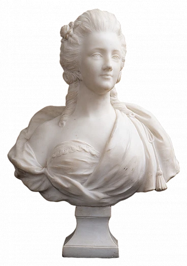 Descrizione: Scultura antica in marmo bianco statuario raffigurante Maria Antonietta (1755-1793), l'arciduchessa austriaca che sarebbe diventata la moglie del re Luigi XVI e l'ultima regina di Francia.