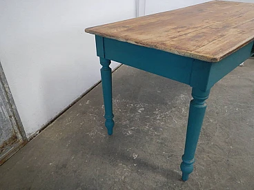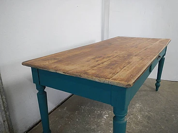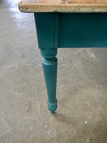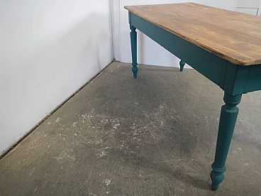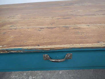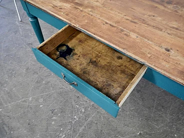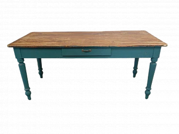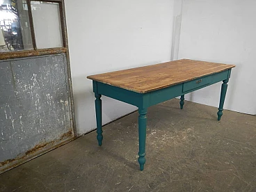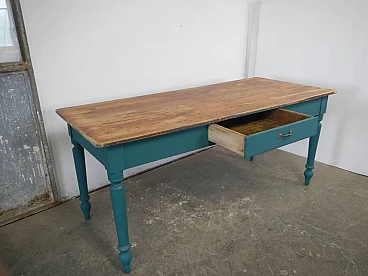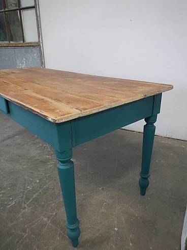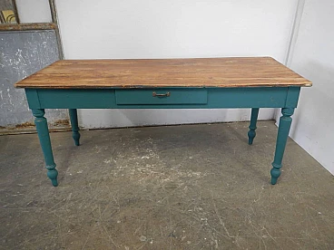 Tavolo in legno di abete verde con piano naturale e cassetto, anni '50