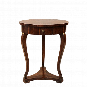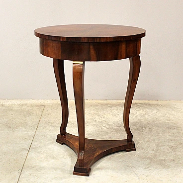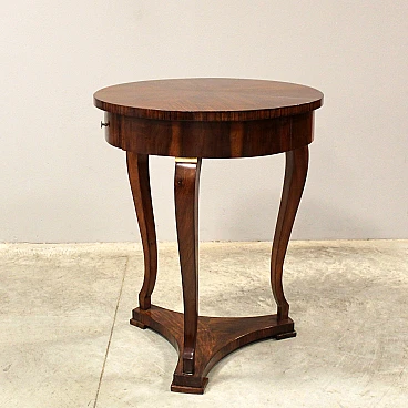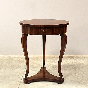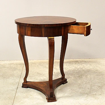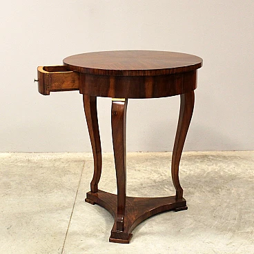 Tavolino Carlo X rotondo in noce con cassetto, '800